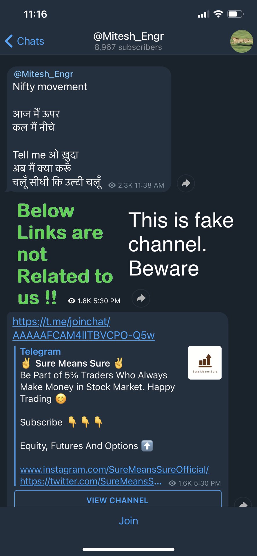 Mitesh Patel On Twitter This Is Fake Telegram Channel Promoting Paid Services I Am Not Running Any Paid Services Beware And Leave Channel Https T Co 0wmr3nurji Twitter